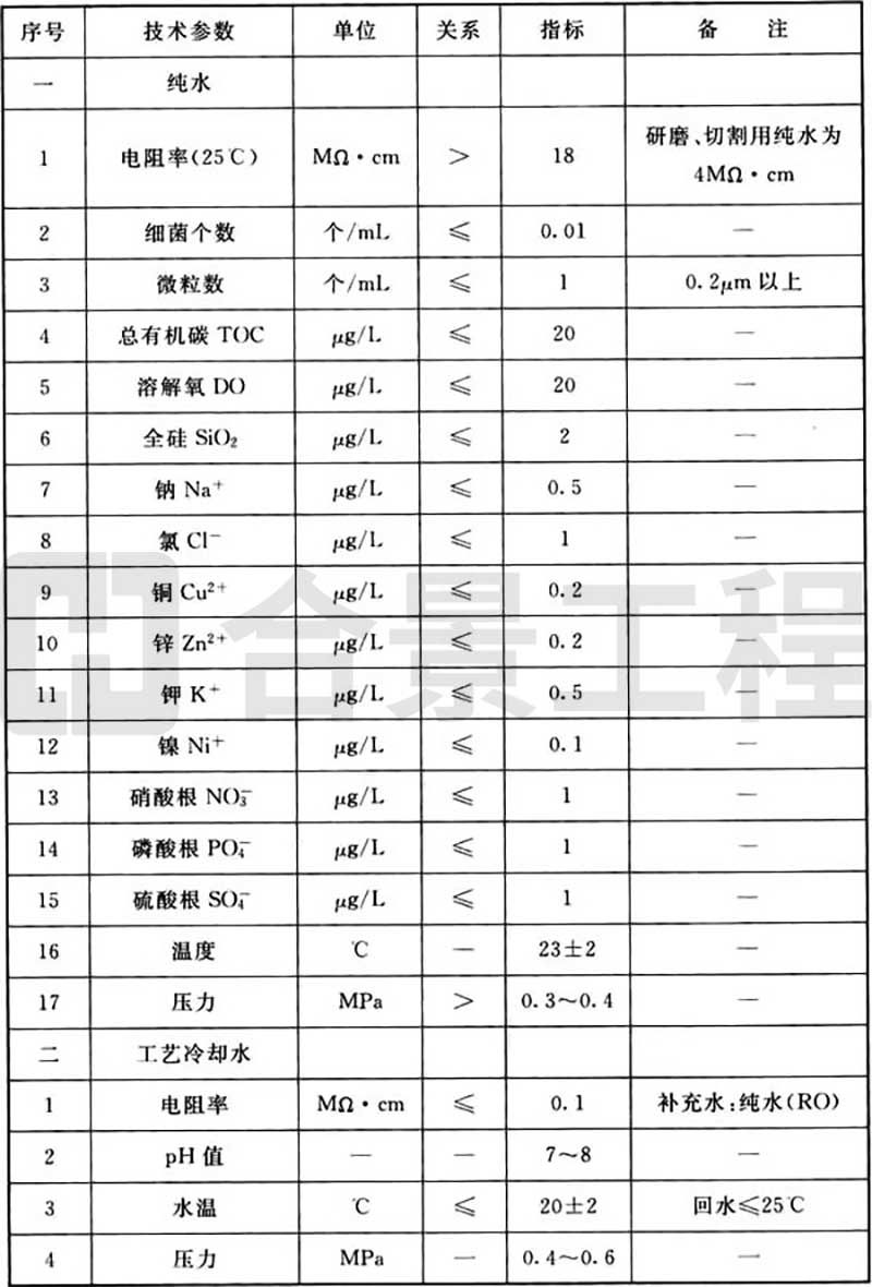 B.0.2 發(fā)光二極管生產(chǎn)工藝動力品質(zhì)(水)要求可按表B.0.2執(zhí)行。